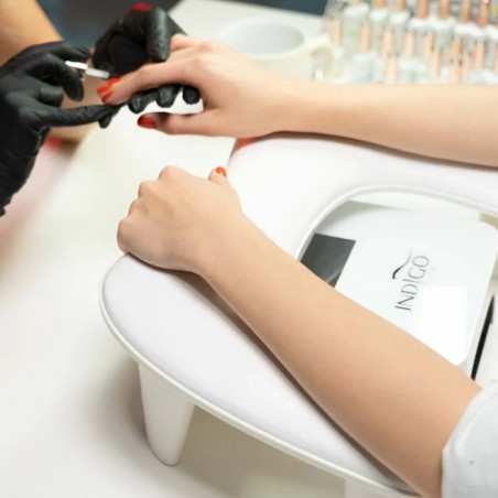 Le repose-mains Indigo est conçu pour offrir un confort optimal et une stabilité parfaite lors des soins des ongles. Avec son design moderne, sa construction robuste en matériaux de qualité, et son coussin doux en cuir synthétique, il facilite le travail des professionnels et améliore l’expérience client.