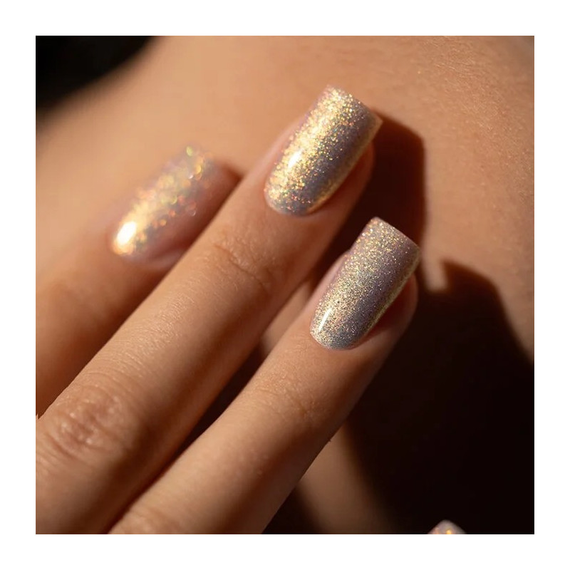 Osez l’audace avec le gel polish Mean Queen de la collection Opal Glow. Ses reflets pailletés gris et jaune doré créent une manucure unique et dynamique. Parfait pour celles qui aiment se démarquer avec des ongles éclatants et originaux, Mean Queen est le choix idéal pour un style audacieux et tendance.