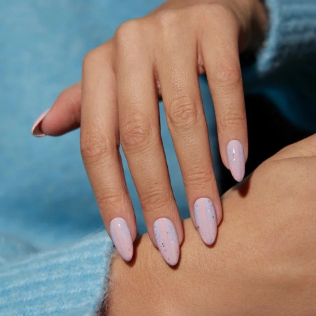 Le top coat Superhot! enrichi en particules holographiques roses pâles apportera cette petite touche d'originalité à votre manucure. Il ne laisse aucune couche collante. Une décoration rapide et minimaliste !