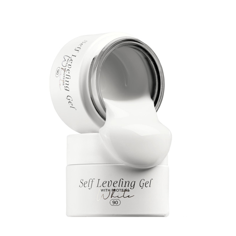 Le self leveling gel 90 white est un gel de construction auto égalisant. Le nombre 90 indique sa viscosité dans la gamme Self Leveling (plus le nombre est petit plus le gel sera fluide). De teinte blanc laiteux, il est ideal en dessous de couleurs pastels pour les faire ressortir ou tout simplement pour un effet milky.