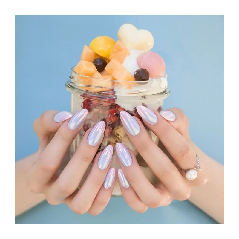 Een zeer fijn poeder dat een parel effect creëert zodra het is aangebracht op de nagel. Het creëert een mooi glad oppervlak dat de basiskleur niet donkerder maakt. GlassMe® Rainbow zal u bekoren niet alleen vanwege zijn prachtige glans maar ook vanwege zijn gemakkelijk gebruik. Het oppervlak is bijzonder mooi op gel polish in pastelkleuren, maar kan worden gebruikt op alle kleuren.