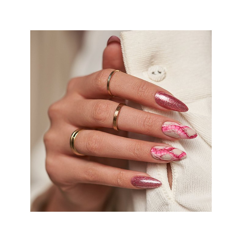 Zet in op een intense roségoudkleurige gloed! Voeg een 3D-effect toe aan je ontwerp met de gouden en roze deeltjes en fleur je feestelijke look op. shine bright en richt de camera op jou. Glimlach!