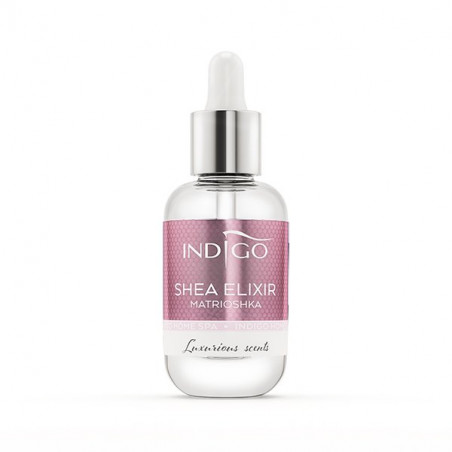 Hoe uw manicure veranderen in een bijzondere behandeling? Het enige wat u hoeft te doen is een klein ritueel als subtiele finishing touch toevoegen! Indigo Matrioshka Shea Elixir werd net daarvoor gemaakt. De voedende formule draagt verzorgt de nagelriemen en nagels en het sensueel parfum zal u betoveren en uw humeur verbeteren! Matrioshka is een uniek, sensueel parfum, gebaseerd op een combinatie van rode vruchten en zoete karamel met vanille. Het resultaat? een bijzonder chic, verfijnd en romantisch parfum!
