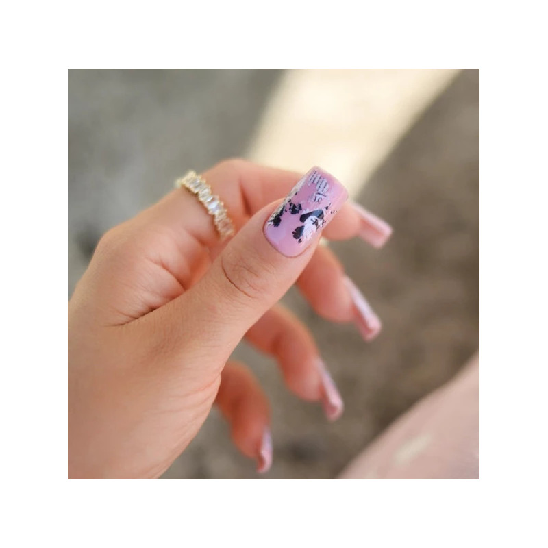 Geen inktresten bij het afdrukken dankzij het Nailspaper transfer vel! Dit is het voordeel van het direct overbrengen van de folie op de kleverige laag van de natuurlijke nagel, wat tijd bespaart en precisie garandeert.